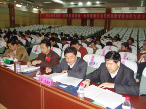 院党委书记王旭善在大会闭幕式上发表讲话,王旭善强调,这次会议开得很成功,达到了预期目的,取得了很多的收获:进一步统一了全院师生员工为创建国家示范性高职学院团结奋斗的思想,进一步增强了全校依法管理学校、提高办学质量的自觉性,进一步加深了对建设和谐校园的理解,增强了大局意识和团结观念。王旭善指出,目标已经确定,关键在于落实。一要进一步认清形势,抓住学校发展的良好机遇;二要以人为本,统筹兼顾,努力构建和谐校园;三要加强管理,真抓实干,确保07年奋斗目标的实现。