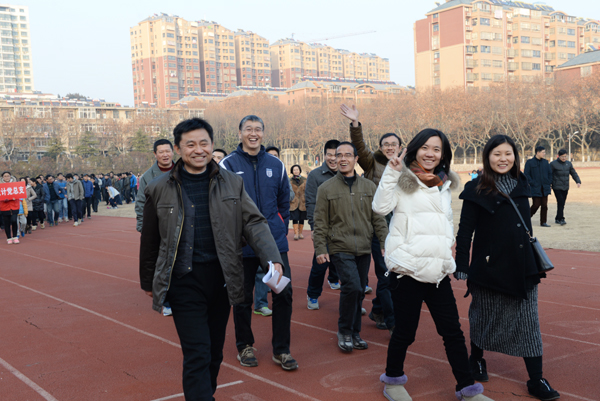为进一步丰富校园文化生活,增强教职工身体素质,倡导“我运动、我健康、我快乐”的理念,12月31日下午4点,我校2016年“健康生活,快乐工作”元旦教职工环校园健步走活动在东操场准点出发。