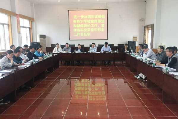 5月20日上午,校党委理论学习中心组在党校教室举行扩大学习会,就进一步加强和改进新形势下学校宣传思想和新闻舆论工作,贯彻落实党委意识形态工作责任制等进行专题学习。党委书记吴光林主持学习会并作总结发言,院长孙进作随机发言,党委副书记张登宏作主讲发言,校领导任留钦、梁惠、曾凡远以及校党委中心组成员、中层干部正职参加了学习活动。