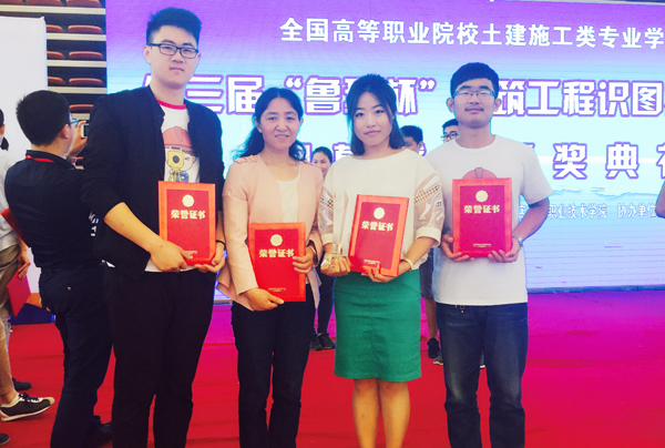 6月4日,第三届全国高职院校土建施工类专业学生“鲁班杯 ” 建筑识图技能大赛在青岛拉开帷幕,我校由建筑工程技术专业赵义、董天天和左隆三名同学组队参赛。在激烈的角逐中,我校代表队脱颖而出,赵义获个人赛特等奖,董天天和左隆获个人赛一等奖,同时获得团体赛一等奖,孙秋荣和王艳两位老师获优秀指导教师奖。