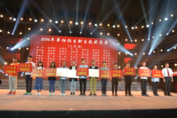 9月24日晚,2016级新生开学典礼暨迎新、欢迎校友返校晚会在体育馆隆重举行。校领导吴光林、孙进、任留钦、梁惠、曾凡远,4200多名新生以及220多名毕业30年校友一同观看了晚会。党委书记吴光林向高分奖励一等奖获得者颁发奖金,院长孙进发表讲话,副院长任留钦主持典礼,副院长曾凡远宣读高分新生表彰奖励文件。