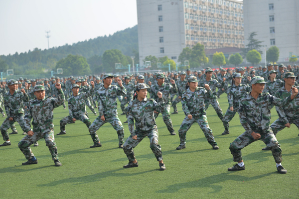 2016级新生经过两周的集中军训,顺利完成各项训练任务并接受检阅。在党委书记吴光林宣布汇报表演正式开始后,来自各二级学院的新生方队依次通过主席台前,接受检阅。各方队整齐划一、气势恢宏,同学们精神抖擞、口号嘹亮,展示了2016级新同学自强向上的精神面貌。军训科目汇报时,参训同学以昂扬的斗志、有素的动作,汇报了立正、稍息、跨立、敬礼、齐步走、跑步走、军体拳等科目的训练成果。