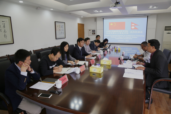 孙进院长向客人简要介绍了我国高等职业教育改革创新发展的举措和成效,着重介绍了我校在人才培养、师资队伍建设、国际合作办学、留学生招生、社会影响力等方面取得的成绩,并向尼泊尔客人介绍了徐州城市的历史文化、经济社会发展情况等。孙进院长与桑多斯先生就开展校际间交流、教师学生培训、留学生招生等内容进行广泛并达成了合作意向,签署了《中国开云在线平台与尼泊尔国立计算机学院交流合作意向书》。