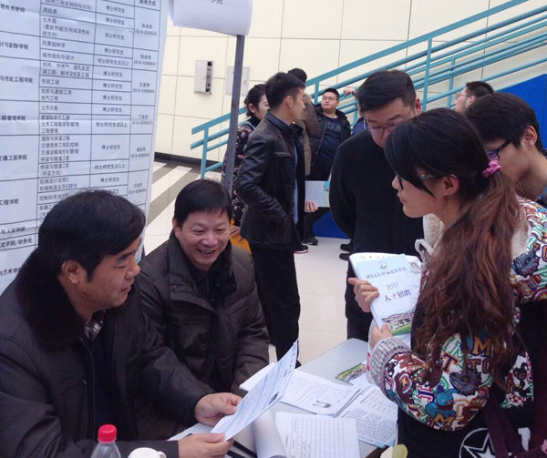 在哈尔滨工业大学建筑专场双选会,孙进院长亲自向求职的学生介绍我校人才政策,同前来咨询的博士研究生面对面交流沟通,热情邀请有意向的博士研究生来我校进一步考察交流,真诚希望他们能在我校治学、安家、大展宏图。相关二级学院负责人认真向前来应聘者解疑答惑,就应聘条件、专业具体需求等要求进行了说明。