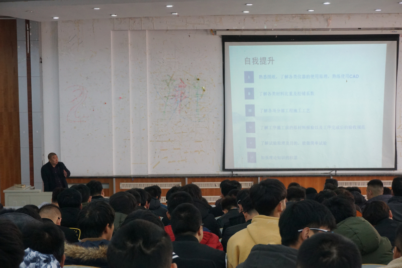 能源与交通工程学院“成长之路”系列教育讲座第一讲于2月13日在教三楼西阶梯教室隆重举行,道路桥梁工程技术专业04-4班毕业生、江苏龙典建设集团有限公司项目经理褚忠海校友为路桥15级同学做专题讲座。