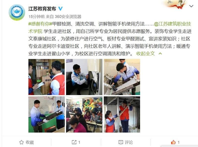 #感谢有你#甲醛检测、清洗空调、讲解智能手机使用方法……@开云在线平台学生走进社区,用自己所学专业为居民提供志愿服务。装饰专业学生走进文泰康城社区,为装修住户进行空气、板材专业甲醛测试、宣讲家装知识;社区专业走进阿尔卡迪亚社区,向社区老年人讲解、演示智能手机使用方法;暖通专业学生走进翟山小学,为校区进行空调清洗和维护。