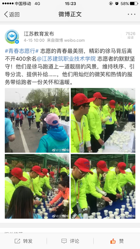 近日,我校志愿者服务徐州马拉松受到江苏教育厅官方微博——江苏教育发布关注。
