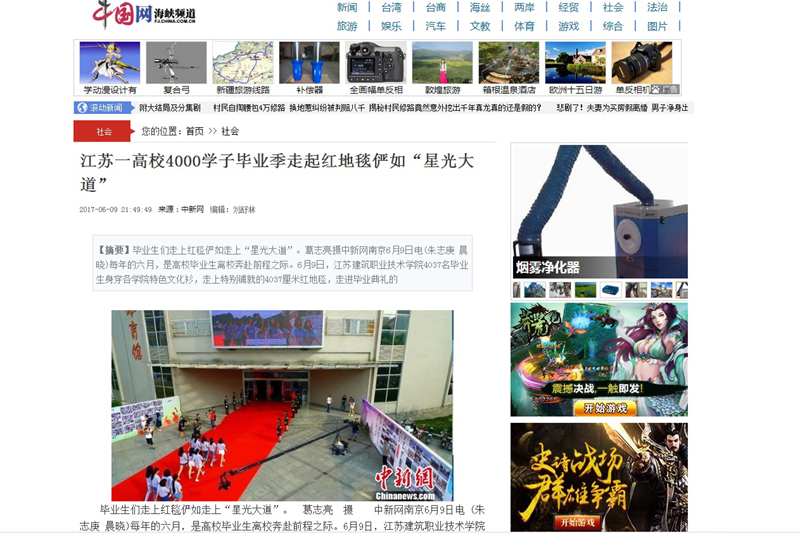中新网:江苏一高校4000学子毕业季走起红地毯俨如“星光大道”