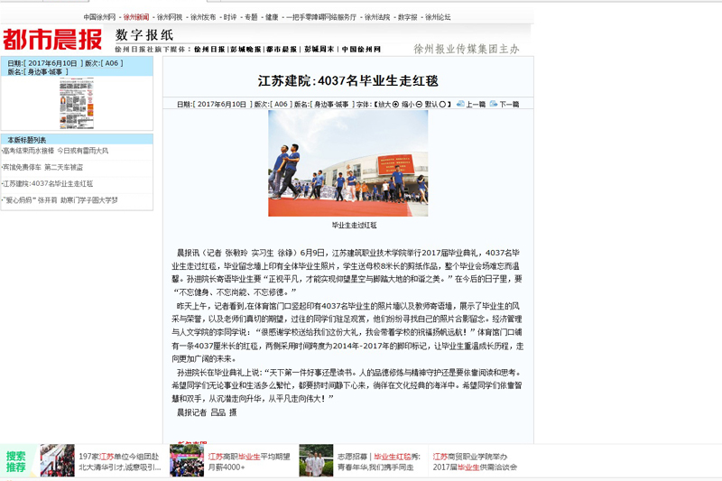 《都市晨报》:江苏建院:4037名毕业生走红毯