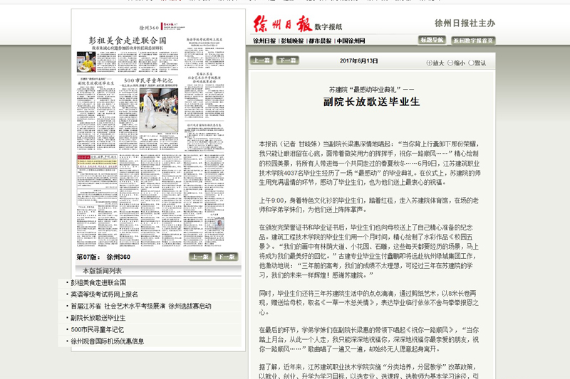 《徐州日报》:苏建院“最感动毕业典礼”——副院长放歌送毕业生