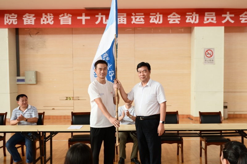 动员会上,孙进回顾了我校在省运会中取得过的优异成绩,赞扬了我校运动健儿吃苦耐劳、勇于拼搏的优良传统,希望所有运动员能够在本届省运动会上戒骄戒躁,勇往直前,敢于拼搏,在竞技比赛中锻炼品行,为校争光、为己争光,在大学生涯留下浓墨重彩的一笔。他要求学校相关部门要为备战的运动员、教练员做好后勤保障。会上进行了教练员、运动员代表宣誓和授旗仪式。(体育课教学部 孙浩)