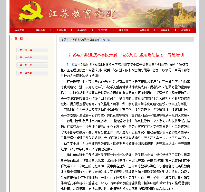 承训单位延安干部培训学院枣园分院对此次培训进行了精心安排,组织参观了王家坪、杨家岭等革命旧址、延安革命纪念馆、梁家河村史馆、南泥湾展馆,开展《延安时期水乳交融的党干群关系》《一个村庄的记忆》和《党中央在延安十三年》等教学与讲座,观看红色历史实景教育课《延安保育院》,通过专题讲座、实景感受、现场教学和激情教学等多种形式,将党史知识、革命传统教育和党性锻炼融于一体,让全体参训人员在听、看、思、忆中,重温党的历史,深刻体会延安革命精神,重温老一辈无产阶级革命家的道德情操、精神风范和革命情怀,接受理想信念教育,洗涤灵魂,启迪思想,进一步增强办好人民满意的高职教育的信心和决心。