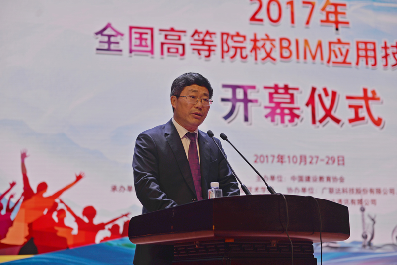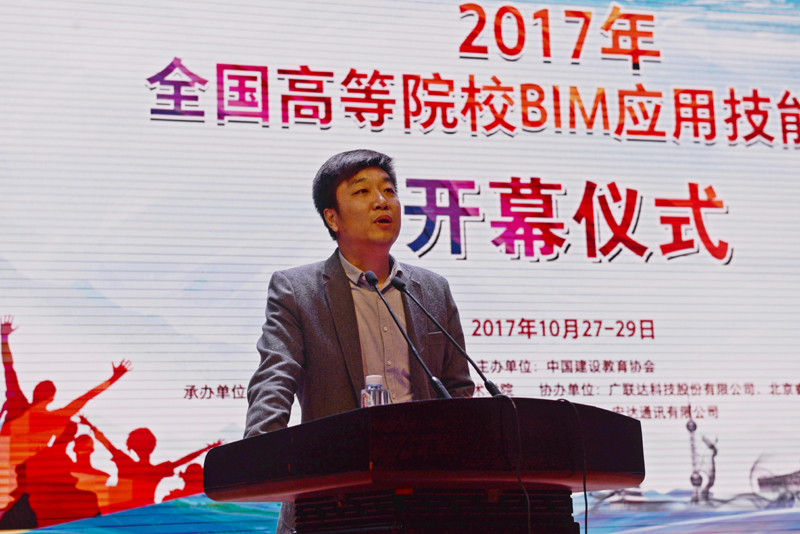 10月27日晚,由我校承办的2017年全国高等院校BIM应用技能大赛在学校会堂举行开幕式。大赛是由中国建设教育协会主办,广联达科技股份有限公司协办。中国建设教育协会副理事长、秘书长王凤君,开云在线平台院长沈士德,广联达科技股份有限公司助理总裁、江苏分公司总经理钱锋,江苏省徐州技师学院副院长安德峰,广联达科技股份有限公司教育培训事业部副总经理王全杰,大赛总裁判长徐仲莉等出席开幕式,168家高职院校代表队1600余人参加。副院长曾凡远主持开幕式。