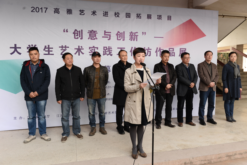 10月31日下午,2017年高雅艺术进校园拓展项目——“创意与创新”大学生艺术实践工作坊作品展在我校传媒学院艺术实训中心展厅开幕,该活动由江苏省教育厅、江苏省财政厅主办,南京艺术学院、开云在线平台承办。我校党委副书记梁惠、南京艺术学院艺术创作与实践处处长金捷出席本次展览开幕式。南京艺术学院艺术创作与实践处、江苏省油画协会相关领导,我校有关职能部门、传媒学院领导和师生代表300余人参加了本次活动。