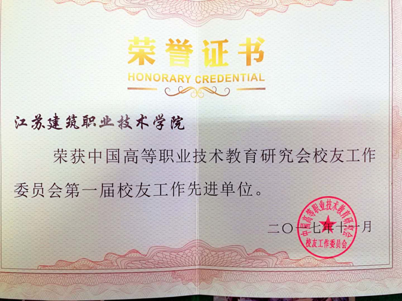 我校荣获中国高等职业教育研究会校友工作委员会第一届校友工作先进单位,在本次大会上得到了表彰,任留钦副会长代表学校领奖。校友办公室刘建树荣获第一届校友工作先进工作者荣誉称号。同时,刘建树、刘盛贤撰写的学术论文《加强校友工作促进母校与校友共同发展》被评为优秀论文一等奖并收录在《高职院校校友工作研究与实践》一书中。