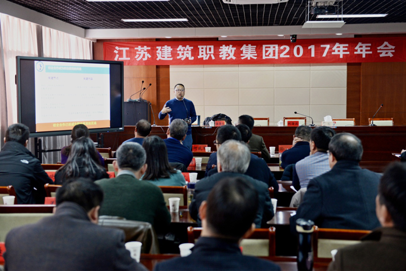 12月8日-9日,江苏建筑职教集团2017年年会在盐城成功召开。本次年会由江苏建筑职教集团主办,盐城幼儿师范高等专科学校承办,江苏省住房和城乡建设厅、盐城市城乡建设局相关领导出席本次会议,以及近百名来自省内建筑类院校、建筑企业领导和专家参加了本次年会。江苏建筑学院孙进书记、刘海波副院长、八个二级学院代表和相关职能部门领导、盐城幼专党委书记刘毓航、校长姜统华及其他校领导出席了本次会议。