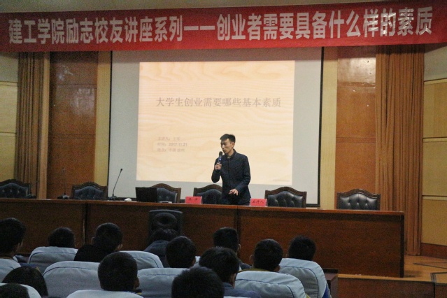 近期建工学院年度校友讲堂系列讲座第六场在学术报告厅开讲,本次特邀2002级校友,沭阳华胜德诚汽车服务公司总经理王军作题为“创业者应该具备什么样的素质”的讲座。报告由建工学院分团委书记李锐老师主持,建工学院创新创业社团全体成员,全体有创新、创业意向的学生参加了本次讲座。