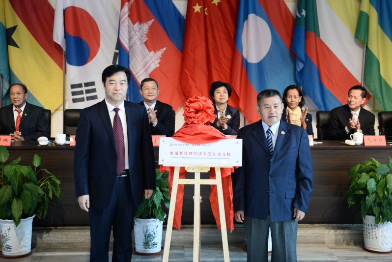 典礼上,李燕副市长和常索发先生共同为“柬埔寨语言文化研究中心”揭牌,孙进书记和恒万达校长、段菲迪校长分别为柬埔寨万达学院江苏分校、柬埔寨管理经济大学江苏分校揭牌。开学典礼上还对上学期学习成绩突出的36名留学生进行表彰。来自柬埔寨的优秀留学生代表赖书敏与在座的留学生同学分享了留学建院的美好时光及对未来的职业规划。