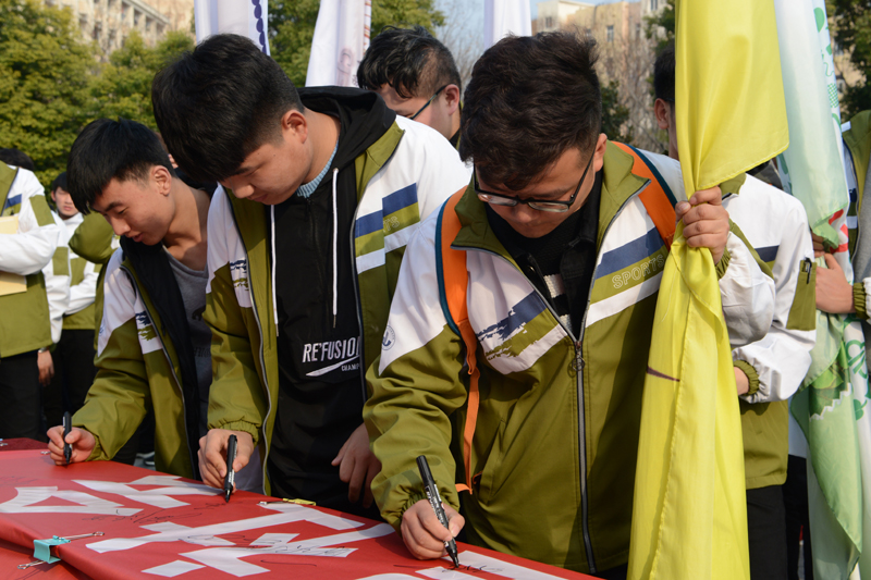 启动仪式后,梁惠邀请参加活动的嘉宾与在场师生一起在印有“实施国家节水行动,建设节水型社会”条幅上郑重签下姓名,表达了关心水、爱惜水、保护水的志愿与决心。活动最后,现场举办了“水传递”竞赛活动,让在场领导、师生动共同体会水的珍贵。