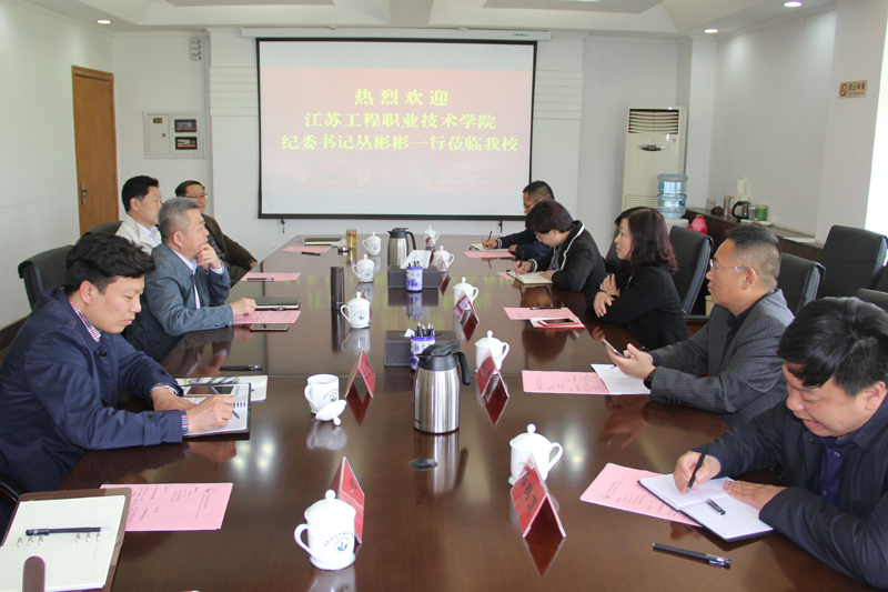 4月24日下午,江苏工程职业技术学院纪委书记丛彬彬一行5人来我校交流纪检监察工作。校纪委魏勇书记热情接待了来访客人。