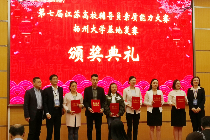 本次比赛由江苏省教育厅主办,扬州大学承办,通过初赛选拔,21名辅导员进入片区复赛参加笔试(基础知识、网文写作)、案例分析、理论宣讲和谈心谈话等内容的比赛。