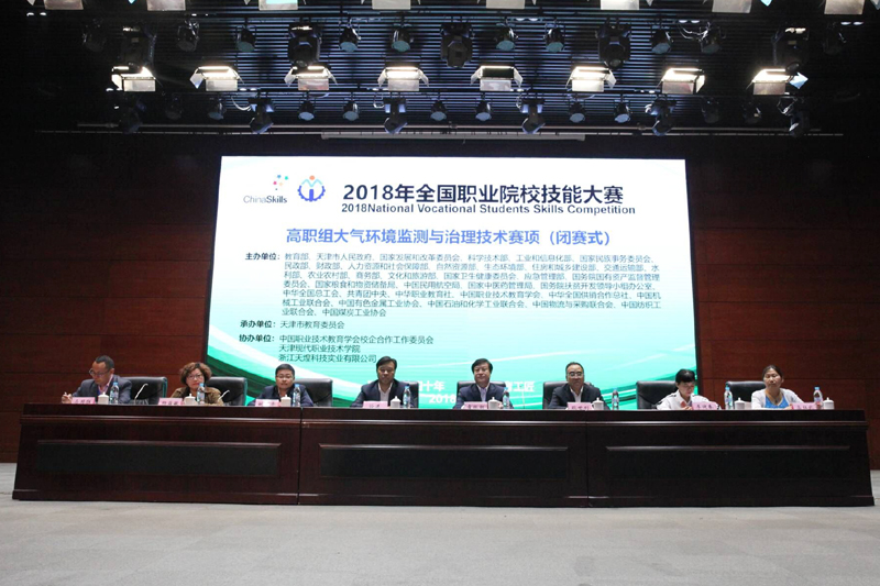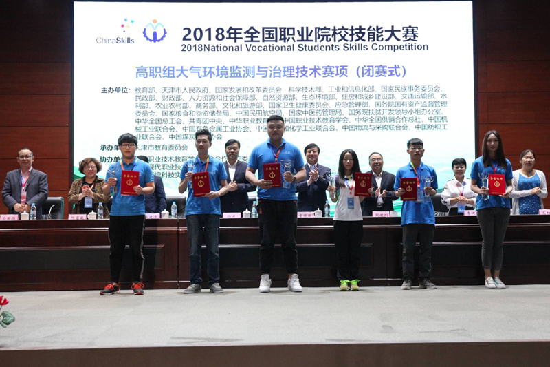 5月12日,第十一届全国职业院校技能大赛高职组大气环境监测与治理技术赛项在天津现代职业技术学院落下帷幕,我校党委书记、赛项执行委员会副主任孙进教授主持闭赛式,并为获奖选手和优秀指导教师颁奖。来自全国24个省市的57支代表队参加了比赛。建筑设备与市政工程学院袁永军、张刚老师指导,柏元超、董浩同学组队代表江苏省参赛,勇夺大赛一等奖,这是我校代表队自2015年以来连续三届获该赛项一等奖。