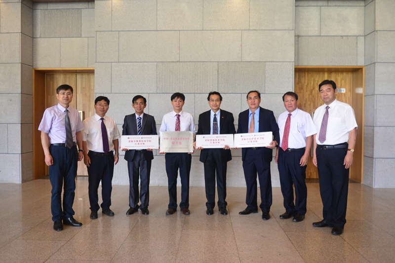 本朋副司长、孙进书记共同为中老职教协作秘书处揭牌,沈士德院长分别与通崂校长、康可欧副校长、坎姆坡副校长为老挝万象省技术学院、老挝老德技术学院、老挝巴巴萨技术学院三所学校分校揭牌。曾凡远副院长代表学校向三所合作院校赠送了对外汉语教材和中国文化书籍。截至目前,我校已在“一带一路”沿线国家老挝、柬埔寨分别设立了技能与语言培训中心,并和两个国家五所高校互设分校。