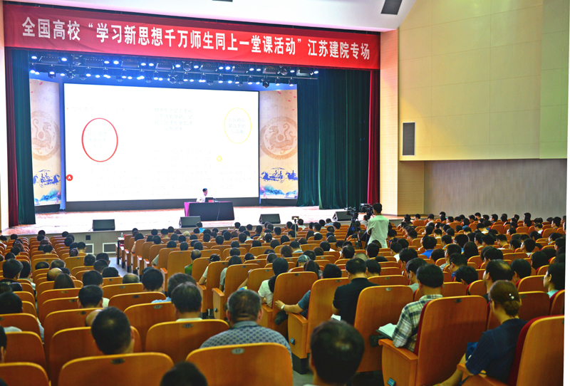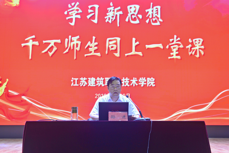为深入学习宣传贯彻习近平总书记在北京大学师生座谈会和纪念马克思诞辰 200 周年大会上重要讲话精神,6月19日下午,我校在会堂举行全国高校“学习新思想千万师生同上一堂课”宣讲活动。江苏省讲师团成员、校党委书记孙进教授以《重温光辉思想致力立德树人》为题,从“马克思与马克思主义,马克思主义的当代价值,学好马克思主义、致力于立德树人”三个方面进行了宣讲,为全校师生上了一堂生动的思想政治理论课。