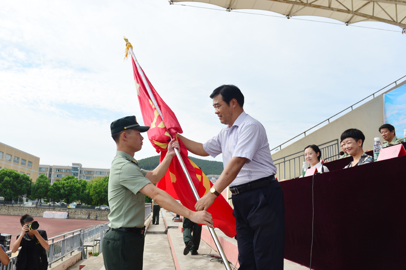 动员会上,孙进向承训教官团授军训团团旗。梁惠作军训动员讲话,她首先代表学校向承训部队官兵表示热烈欢迎和衷心感谢,并要求全体参训新生一要在思想上高度重视,将本次军训作为一次精神洗礼,进一步培养自己的爱国热情,用当代军人的核心价值观来塑造和丰富当代大学生的核心价值。二要在行动上严守纪律,积极参训,把本次军训作为一次责任担当,树立居安思危的忧患意识,认真完成每一项军事技能训练,做一个有抱负、有担当的有志青年。三要把本次军训作为一次人生历练,学习革命军人艰苦奋斗、勇往直前的精神品质,通过军训使自己的体魄更强健、意志更顽强、信念更坚定。