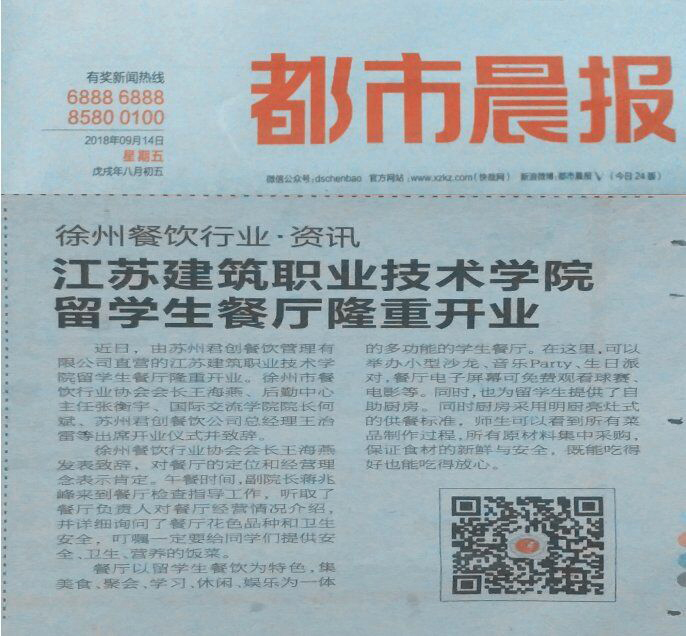 近日,我校留学生餐厅开业,这里的异国美食、温馨环境、优质服务受到《都市晨报》关注。