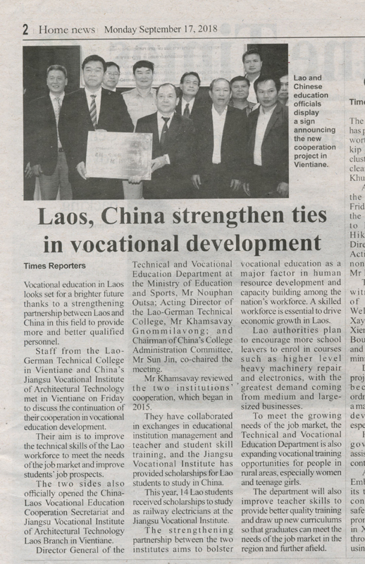 党委书记孙进教授率团于9月13日之9月20日对老挝、柬埔寨两国进行了正式友好访问。在访问期间,代表团先后走访了6所学校、2个政府部门和2家中资企业,受到到访学校、部门和企业的高度重视和热烈欢迎。当地媒体对我校代表团到访也十分关注,老挝教育报、万象时报、万象邮报和柬埔寨国家电视台在黄金时间都大幅报道了代表团出访成果和合作意义。柬埔寨国家电视台新闻频道指出,孙进来访以及中柬学校合作已经取得的丰硕成果显示,“中柬两国友谊稳固,教育领域的合作交流对于增进两国理解合作具有重要性。”该报还对两国教育合作取得更大成就给予很高期待。《老挝教育报》高度评价了我校与老挝多所院校的合作成果,该报认为,“作为中国顶级梯队的开云在线平台,连续三年为老挝经济发展培养高素质技术技能人才,培养质量高,学生素质好,得到了老挝教育部和合作院校以及家长、学生的高度认可。”到访学校、企业和政府网站也都对孙进书记的到访在显著位置进行了报道。