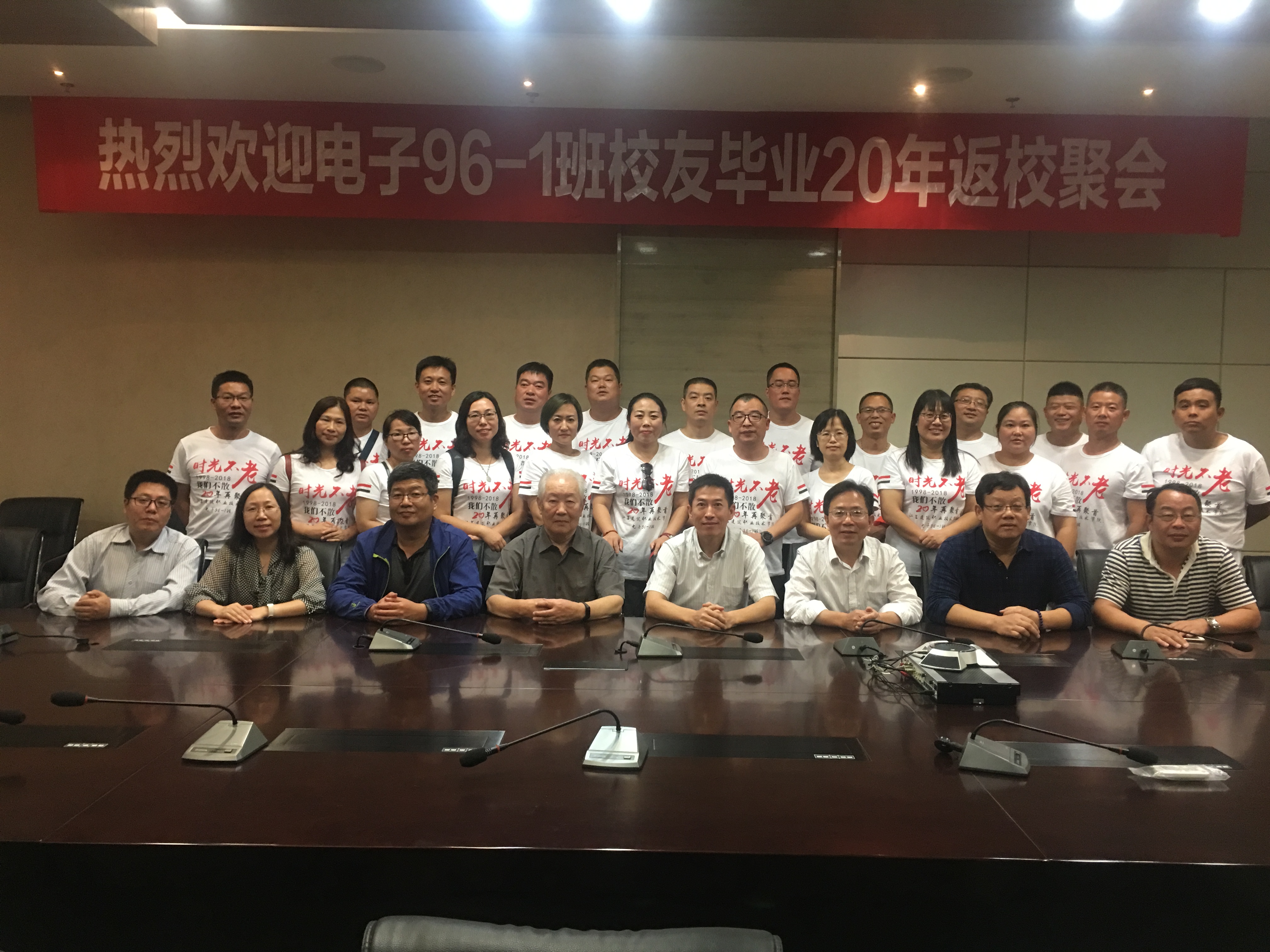 机电工程学院电子96-1班和机电94-2班57名校友分别于10月2日、3日回到母校,共庆毕业20周年,畅谈人生感悟,追忆同窗往事,拥抱母校美好景色,展望美好未来。机电工程学院党总支书记潘峰、院长仇文宁出席了此次聚会。