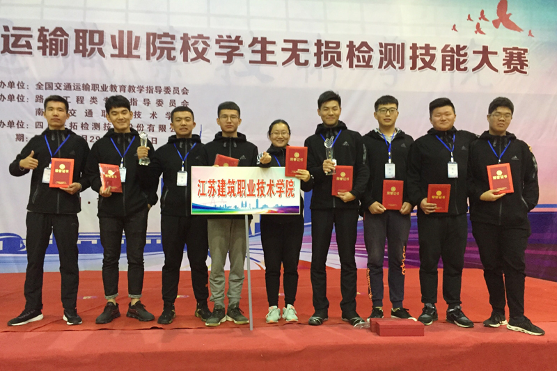 10月29日至11月2日,首届全国交通运输职业院校学生无损检测技能大赛在南京交通职业技术学院举行。由我校鲍英基、芦军、蒋梦雅三位老师指导,李文斌、孙威等八名学生组队参加了此次大赛,荣获单项技能二等奖2项,单项技能三等奖9项,团体三等奖2项。