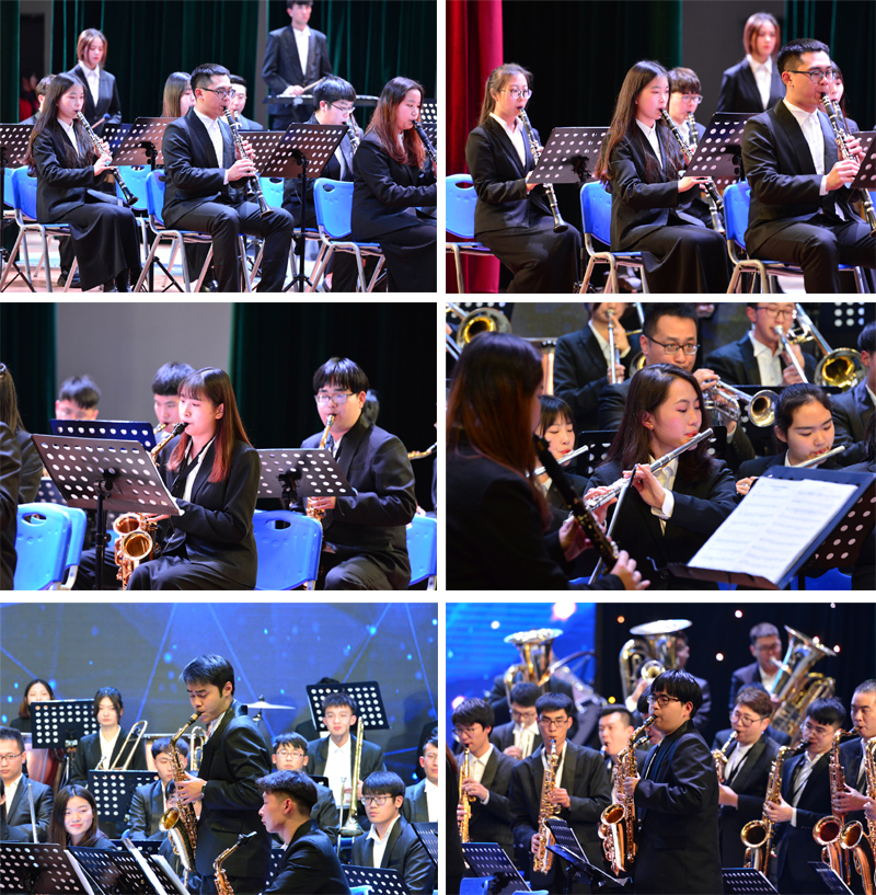 音乐会上,全体师生齐唱《歌唱祖国》为改革开放四十周年献礼,拉开了序幕。催人奋进的《勇往直前进行曲》、生动有趣的《哆啦A梦之歌》、浪漫热烈的《青春之舞》、如梦如幻的《Let it go》、荡气回肠的《加勒比海盗》、欢快摇摆的《Tequila》、震撼人心的《拉德斯基进行曲》等八首经典管乐作品在音乐会上逐一上演,时而澎湃时而舒缓的曲调为全场观众带来了一场视听盛宴。节目中间还穿插了乐曲、乐器介绍,使观众在欣赏作品的同时了解了音乐知识。中场进行了师生二胡与长笛合奏和器乐社团带来的曲目演奏,音乐会在返场乐曲《铃儿响叮当》的欢快旋律中,音乐会落下了帷幕。