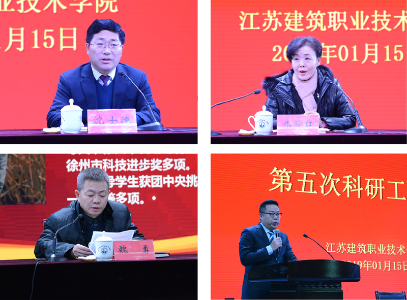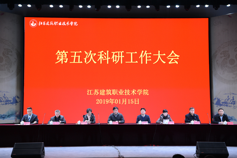 1月15日下午,我校在会堂举行第五次科研工作大会。校领导孙进、沈士德、梁惠、魏勇、曾凡远、刘海波、蒋兆峰出席大会,徐州市科协副主席朱晓红受邀出席大会,全校副科级以上干部、全体专任教师、科研骨干参加了会议。
