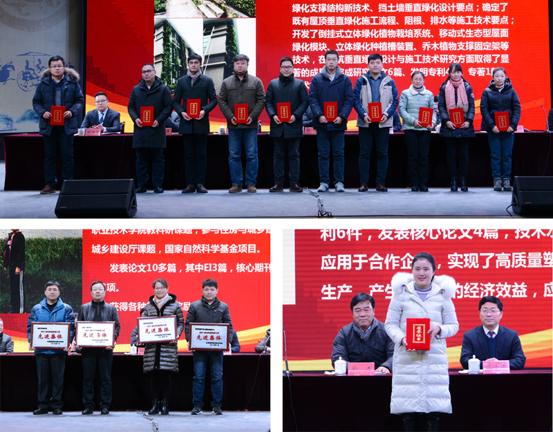 纪委书记魏勇宣读表彰文件,2018年重大项目申报专项奖获得者,学校第九届优秀科研成果获得者、优秀科研论文获得者、先进集体代表和先进个人依次上台领奖。建筑管理学院副院长刘大鹏博士、交通工程学院教师陶祥令博士分别代表先进集体、先进个人发言。