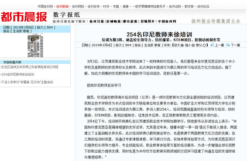 据悉,印尼高校教师海外培训项目(江苏)是一项印尼教育与文化部全额资助的培训项目,开云在线平台作为本次培训的中方联络单位和主要承办单位,中国矿业大学和江苏师范大学也分别承担一些项目。本次培训活动为期三周,参训人数254人,培训范围涵盖高校校长领导力培训、纺织服装、STEM项目、影视动画制作、信息技术应用、非正规教育教职员工管理等多项内容。