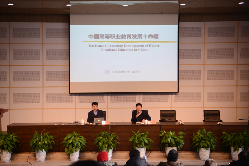 3月10日上午,江苏省教育厅袁靖宇副巡视员应邀来校,在图书馆报告厅为印尼教育文化部优秀教师与校长中国培训班作了一场题为“中国高等职业教育发展十命题”的报告,院长沈士德出席并主持报告会,副院长曾凡远、刘海波,印尼教育文化部在徐培训的全体教师与校长260多人听取了报告。