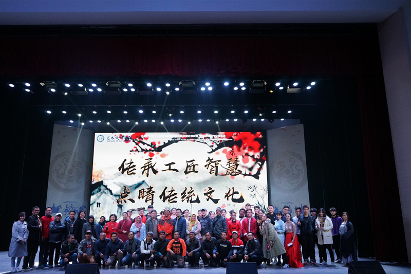 3月20日晚,艺术设计学院“传承工匠智慧 点睛传统文化”展示活动在会堂拉开帷幕。印尼来访教师与我校学生一起观看表演。