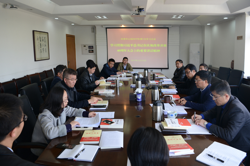 3月22日上午,校党委理论学习中心组在第一会议室召开学习会,集中学习贯彻习近平总书记在庆祝改革开放40周年大会上的重要讲话精神。党委书记孙进教授主持学习会,并作主讲发言。校党委理论学习中心组成员参加学习活动。