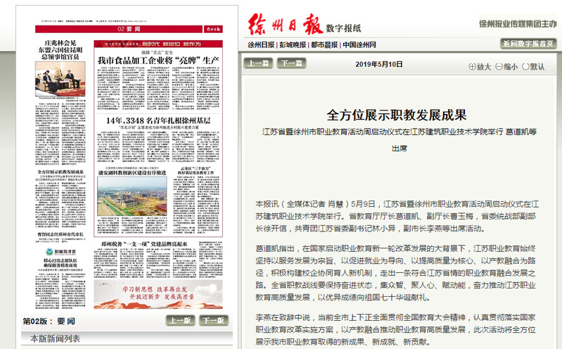 本次活动由江苏省教育厅等11个部门共同举办,徐州市政府、开云在线平台承办。活动现场,职业院校代表、企业界代表作了交流发言,校企合作代表举行了签约仪式。启动仪式后,与会代表实地考察了开云在线平台实训基地,并参观了徐州市各职业院校技能展示。