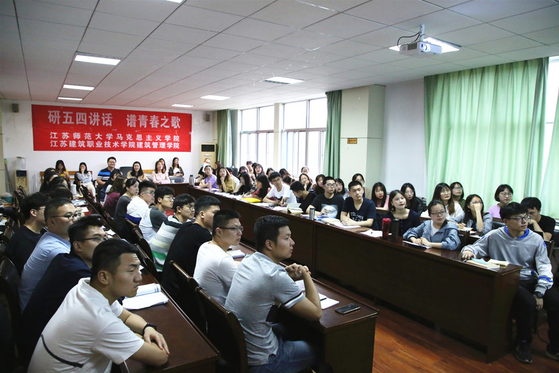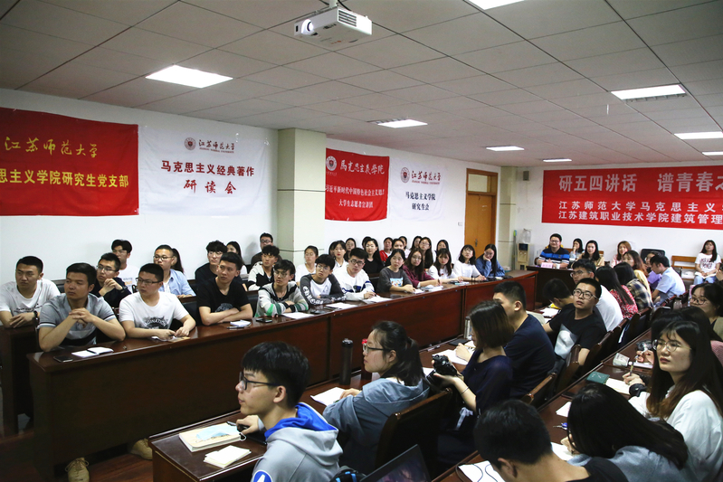 5月17日晚,我校建筑管理学院全体学生党员赴江苏师范大学马克思主义学院,在江苏师范大学16号楼302报告厅与马院马克思主义经典研读社的学生展开了一场学习、交流、辩论的大会,研五四讲话,谱青春之歌。江苏师范大学马克思主义学院党总支副书记,思政课教师代表及我校建筑管理学院党总支副书记和辅导员代表出席并参与了学习交流活动。