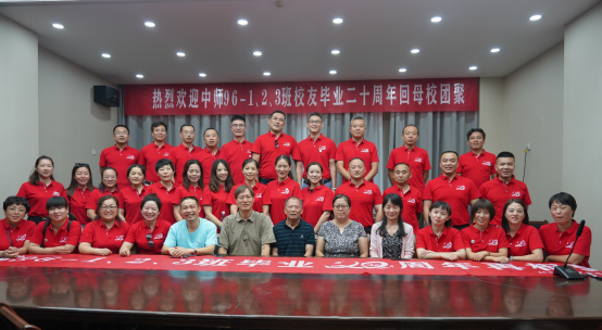 8月3日,宁静的建院校园里活跃着一群火红的年轻身影,流淌着一股火热的青春激情,中师96-1、2、3班毕业二十年返校聚会活动在体育馆基础学院会议室隆重举行。来自全国各地的30余位校友欢聚一堂,班主任及任课老师韩成标、闫照粉、李大勇、沈文洁、刘晓红等老师参加了座谈会,校友会华国平也亲临现场向校友们表达了关切与问候。