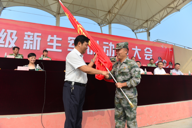 动员会上,孙进向承训教官团授军训团团旗。梁惠作军训动员讲话,她首先代表学校向承训部队官兵表示热烈欢迎和衷心感谢,她说,我校的前身是一所军校,大学生军训对于我校来说,有着更为深刻的意义。她对此次军训工作提出三点要求:第一,同学们要以积极的姿态,昂扬的斗志,投身到军训中间去,坚决完成军训任务;第二,同学们要行动上严守纪律,积极参训,认真完成每一项军事技能训练,做一个有抱负、有担当的有志青年;第三,各部门要精心组织,科学训练,确保安全。