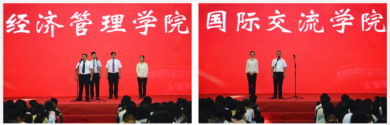 外宾LINNA女士致辞,她对学校为留学生创造的优良学习环境与成才平台表示感谢,并勉励全体留学生要珍惜学习机会,努力掌握专业知识与技能,早日学成,报效国家。9个二级学院党政领导班子成员依次上台,向新生表达了真挚的祝愿和殷切的希望。教师代表张远鼓励新生们要不负青春韶华,勇于追逐梦想,在拼搏奋进中实现人生理想。家长代表王勇同志希望新同学们更加努力,早日成长成才,为国家做贡献。艺术设计学院视觉19-1班高欣佳同学代表全体新生发言。