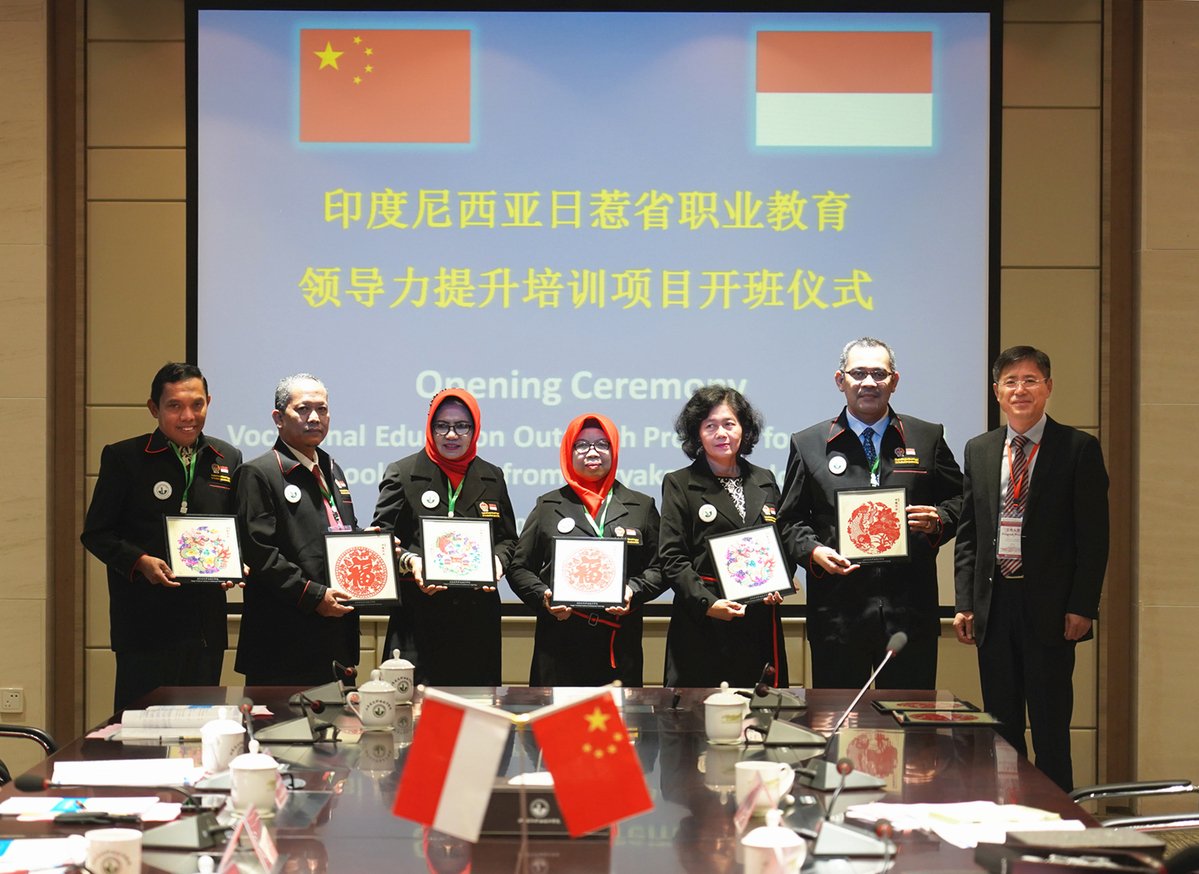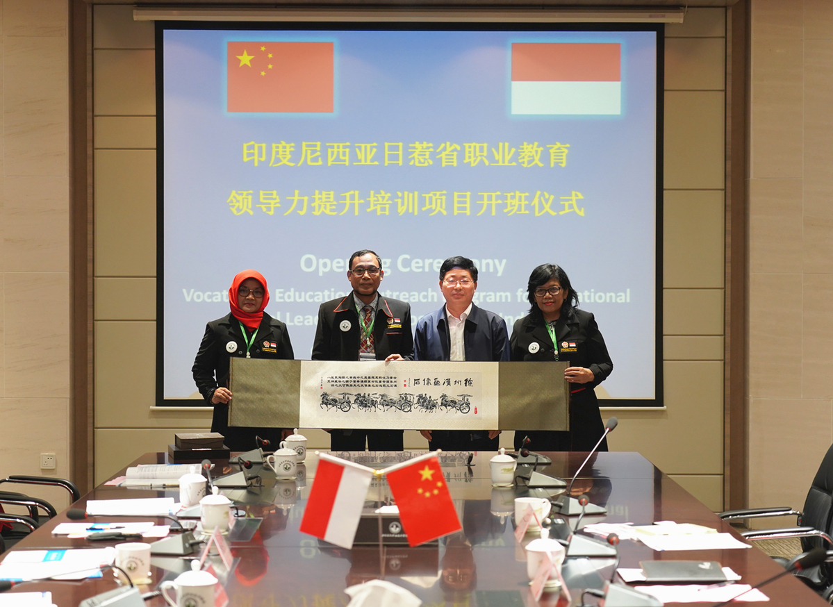 10月12日上午,印尼日惹省职业院校长领导力培训班在图书馆会议室顺利开班。来自日惹省的24名教育厅官员及职业学校校长参加开班仪式。院长沈士德教授出席开班典礼,副院长曾凡远致欢迎词,国际处处长何斌主持开班典礼。