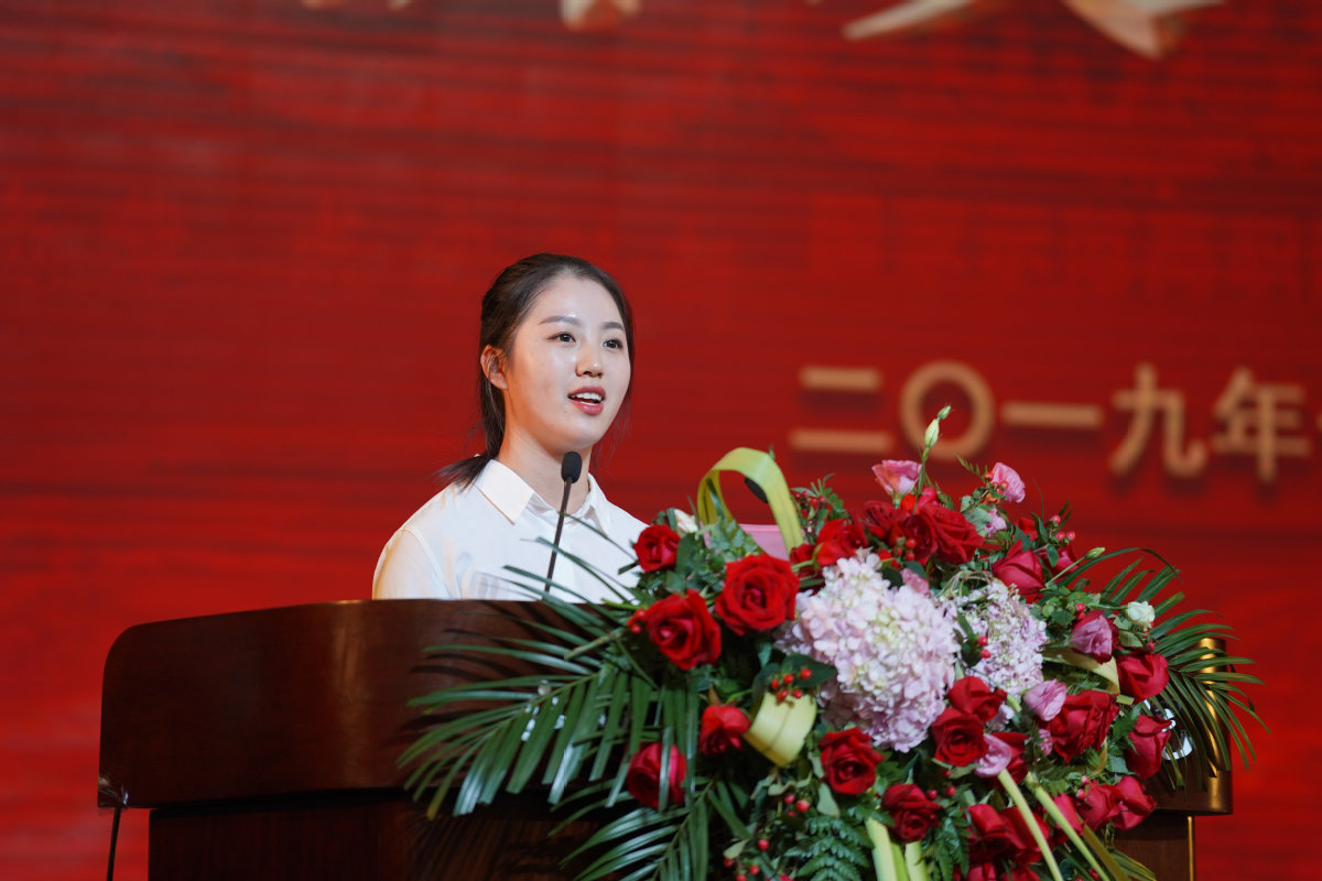 艺术设计学院胡鑫作为学生代表发言。她分享了在建院求学的故事,感谢建院、老师对她成长的帮助,并代表全体同学表示,将牢记“厚生尚能”的校训,努力学好专业知识,练就一身过硬本领,回报母校和社会。