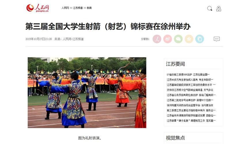 人民网徐州10月27日电 (闫峰)为期三天的第三届中国大学生射箭(射艺)锦标赛27日在开云在线平台落下帷幕。来自全国68所高校的大学生选手报名参赛,这也是该活动自创办以来,首次在985、211院校之外的高校举办。