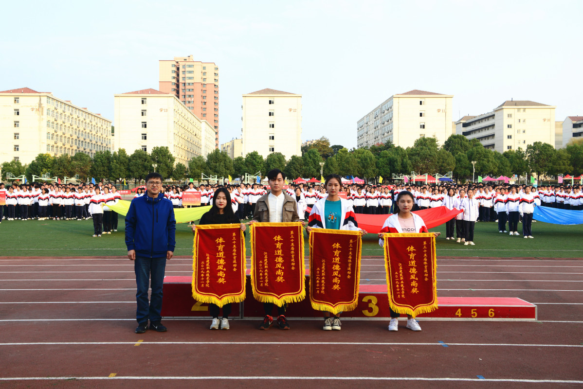 11月3日下午,我校第三十五届体育运动会顺利完成了全部赛事,圆满闭幕。校党委书记孙进教授、院长沈士德教授、副院长曾凡远、副院长蒋兆峰参加闭幕式并为获奖团队及个人颁奖,蒋兆峰宣布第三十五届运动会闭幕并发表讲话。校体工委全体成员以及各二级学院党总支副书记参加了闭幕式。