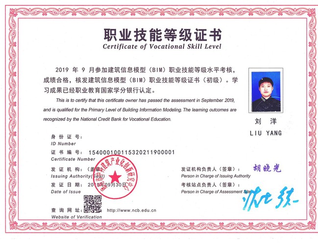 11月6日,自国务院发布《国家职业教育改革实施方案》实施1+X证书制度以来,首批建筑信息模型(BIM)职业技能等级证书的首次全国考点考前动员会暨首批试考证书颁发仪式在河北省廊坊市举行,会议由廊坊市中科建筑产业化创新研究中心主办,教育部职业教育与成人教育司、住房和城乡建设部人事司、全国住房和城乡建设职业教育教学指导委员会等有关领导出席,全国近300所院校的500多名教师参加,我校建工17-7班刘洋(女)同学获建筑信息模型(BIM)职业技能等级的00001号证书,并获得上海宝冶建设集团有限公司的工作签约。